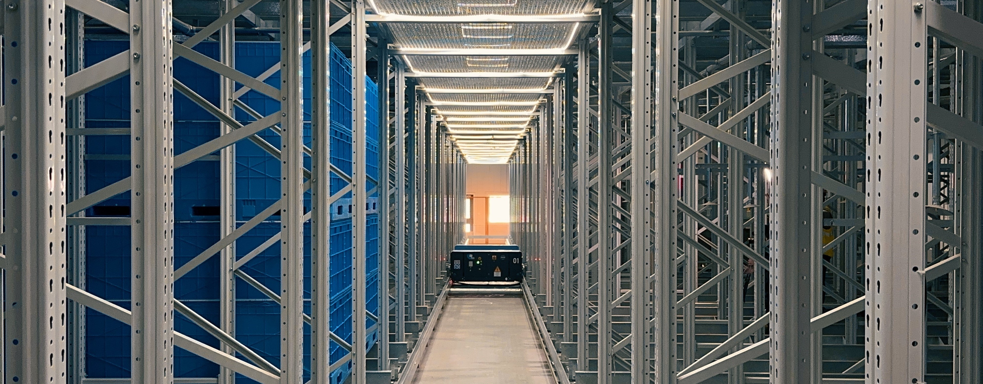 供应库房采用子母车密集存储的形式,在设计之初就充分考虑到包辅材品规少、批量大、供给量大的特性。在系统中,纸箱库一期共有2176个存储货位,包材库一期共有965个货位。系统配备11台子母车,能够精准、迅速实现任意托盘的高效取放作业,极大提升了物流供应的及时性,确保生产连续、有序进行。